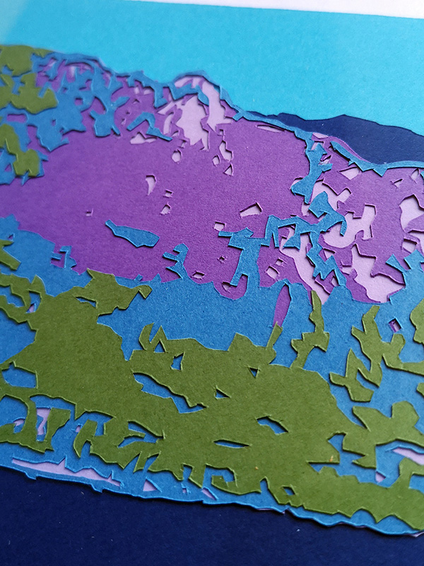 Mes découpages artistiques sont un jeu captivant de superpositions de feuilles colorées, chaque teinte provenant d'une feuille distincte. Transformez une photo en oeuvre d'art unique avec la création d'un découpage sur mesure.